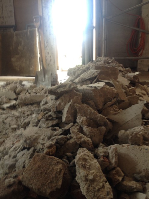 De muur en de zoldervloer klaar, begin wandverwarming én de leem komt aan.