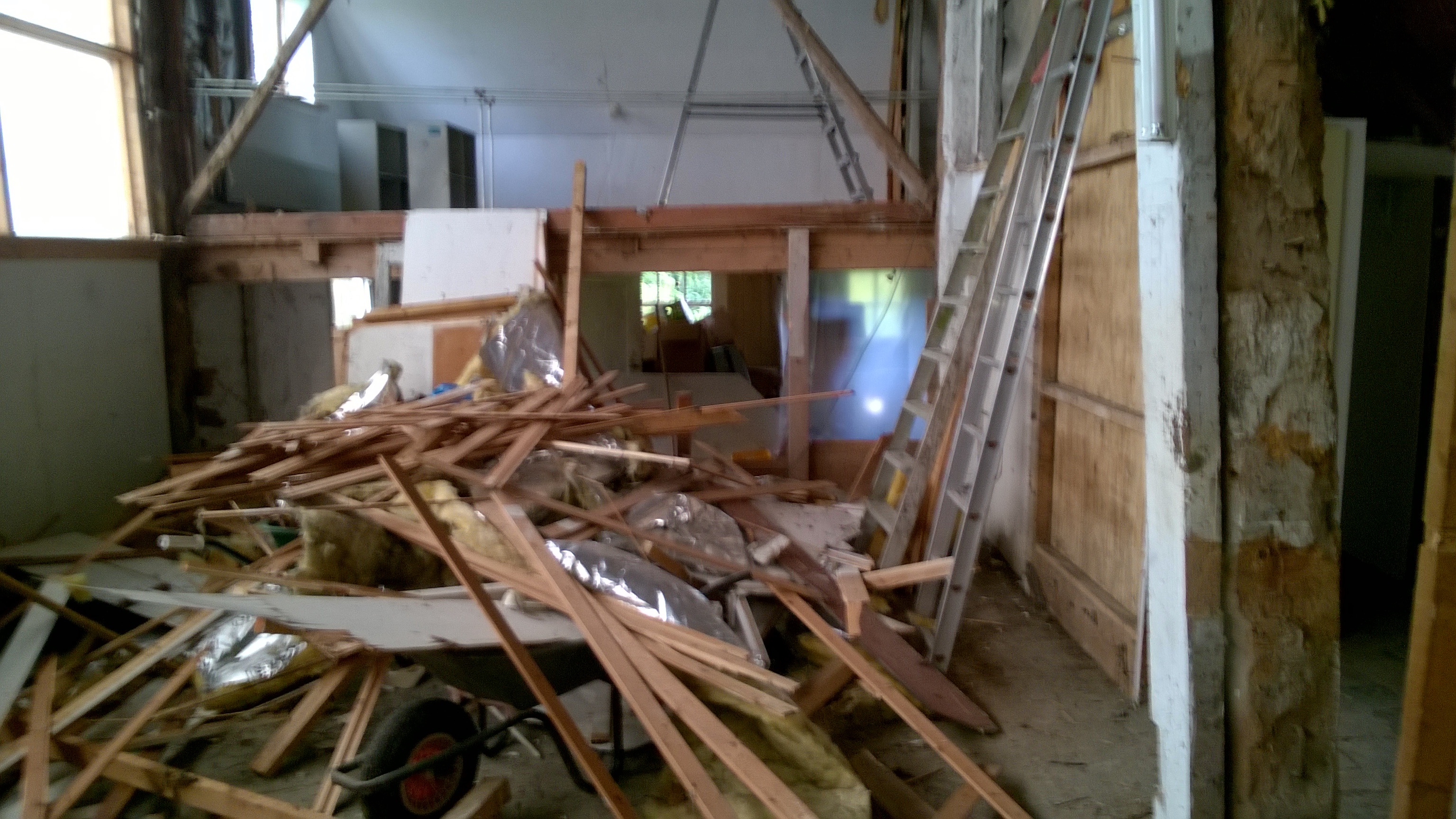 De muur en de zoldervloer klaar, begin wandverwarming én de leem komt aan.