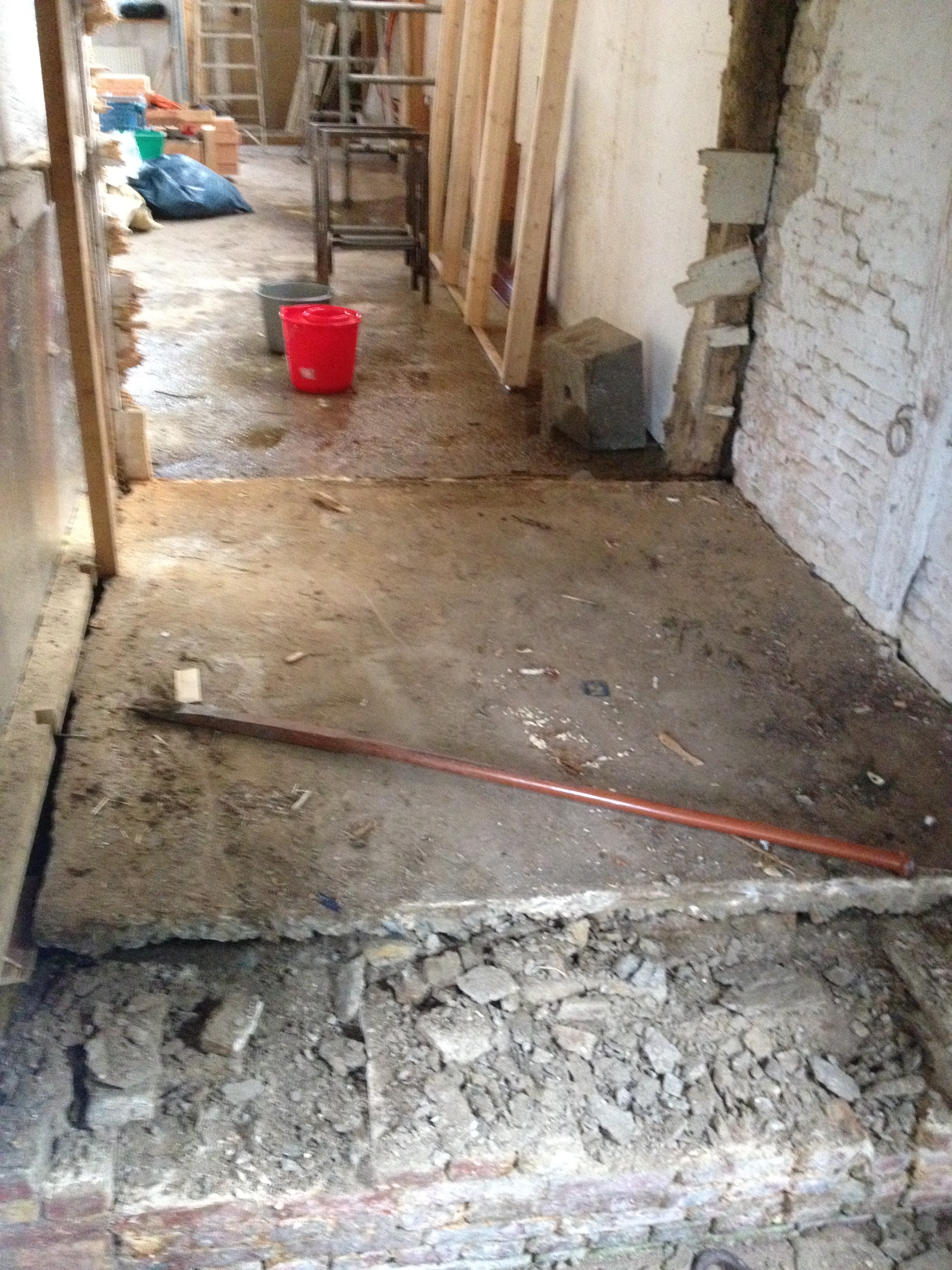 De muur en de zoldervloer klaar, begin wandverwarming én de leem komt aan.