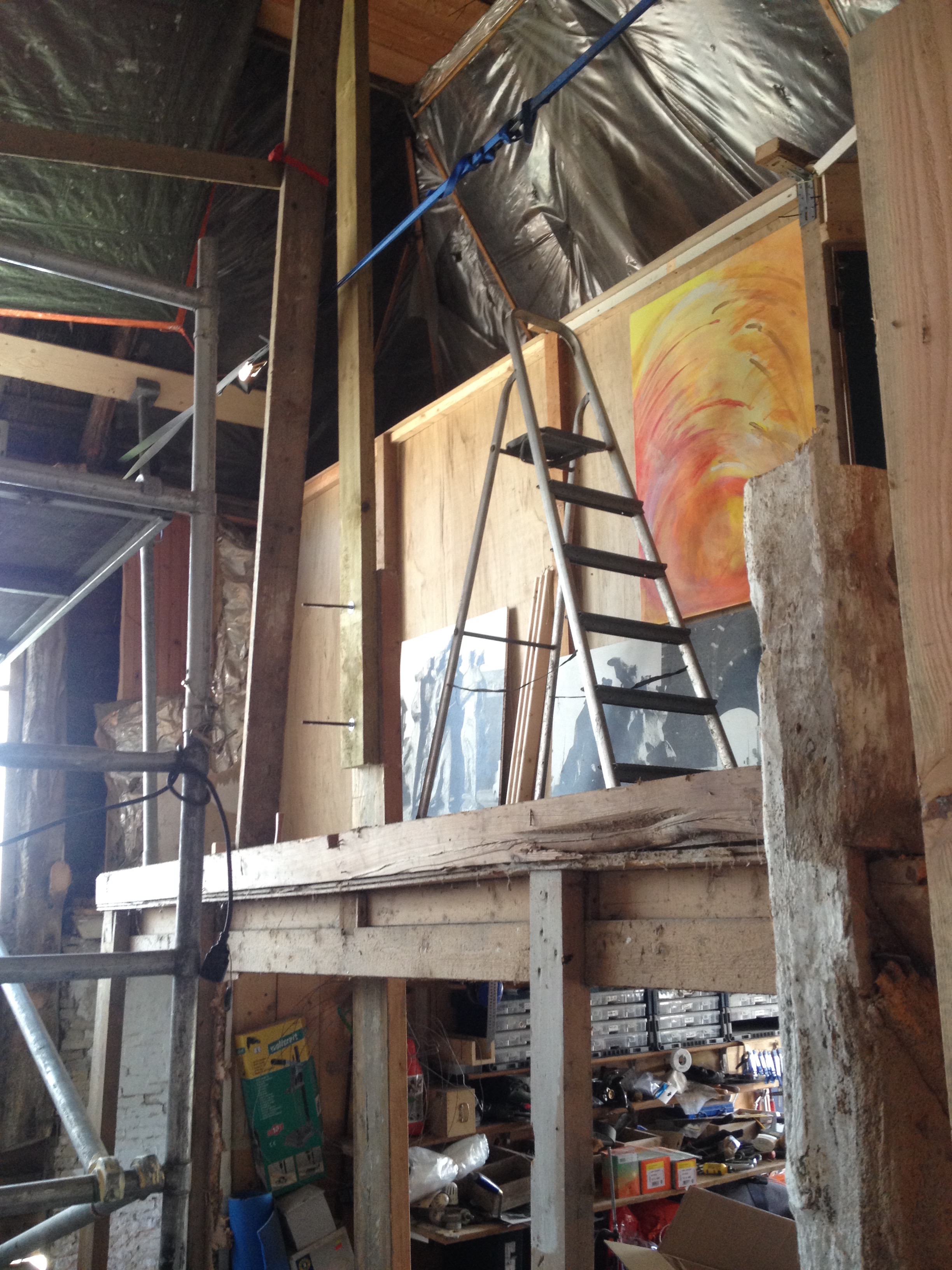 De muur en de zoldervloer klaar, begin wandverwarming én de leem komt aan.