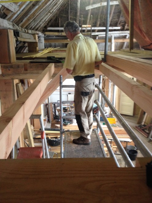 De muur en de zoldervloer klaar, begin wandverwarming én de leem komt aan.