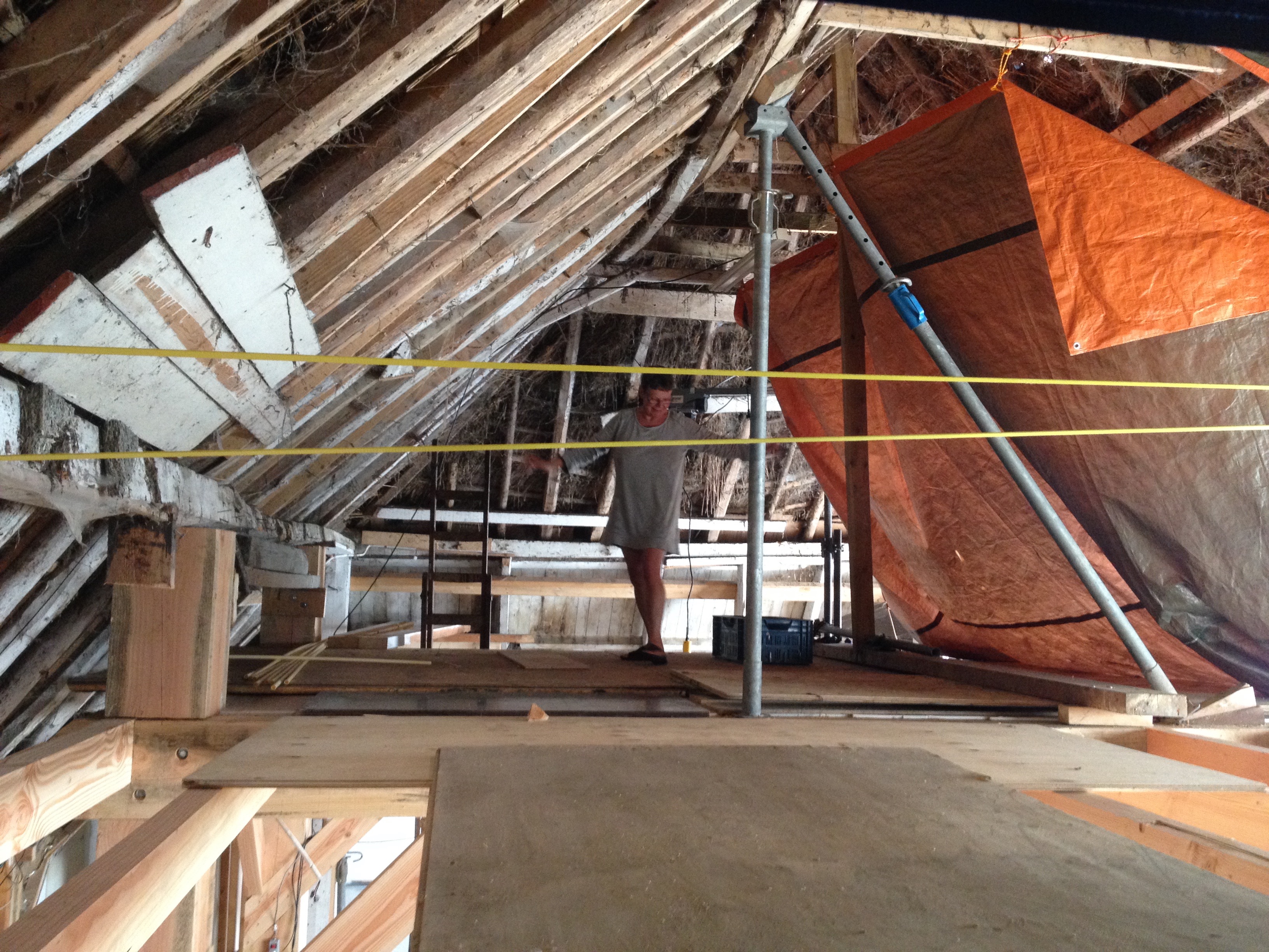 De muur en de zoldervloer klaar, begin wandverwarming én de leem komt aan.