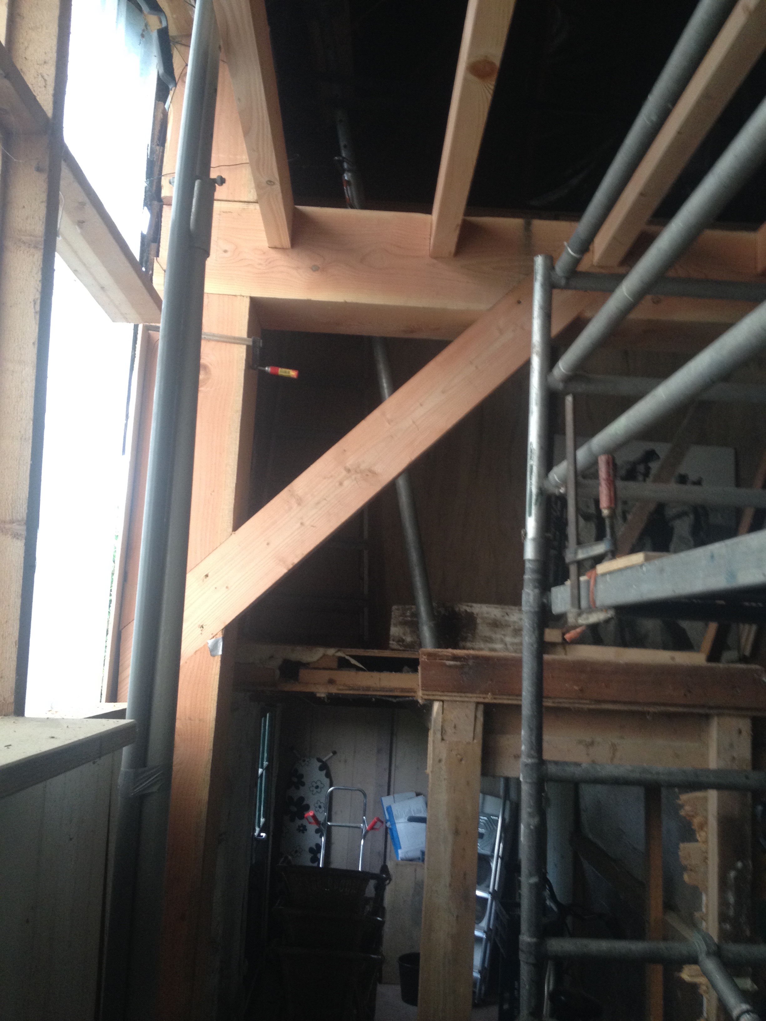 De muur en de zoldervloer klaar, begin wandverwarming én de leem komt aan.