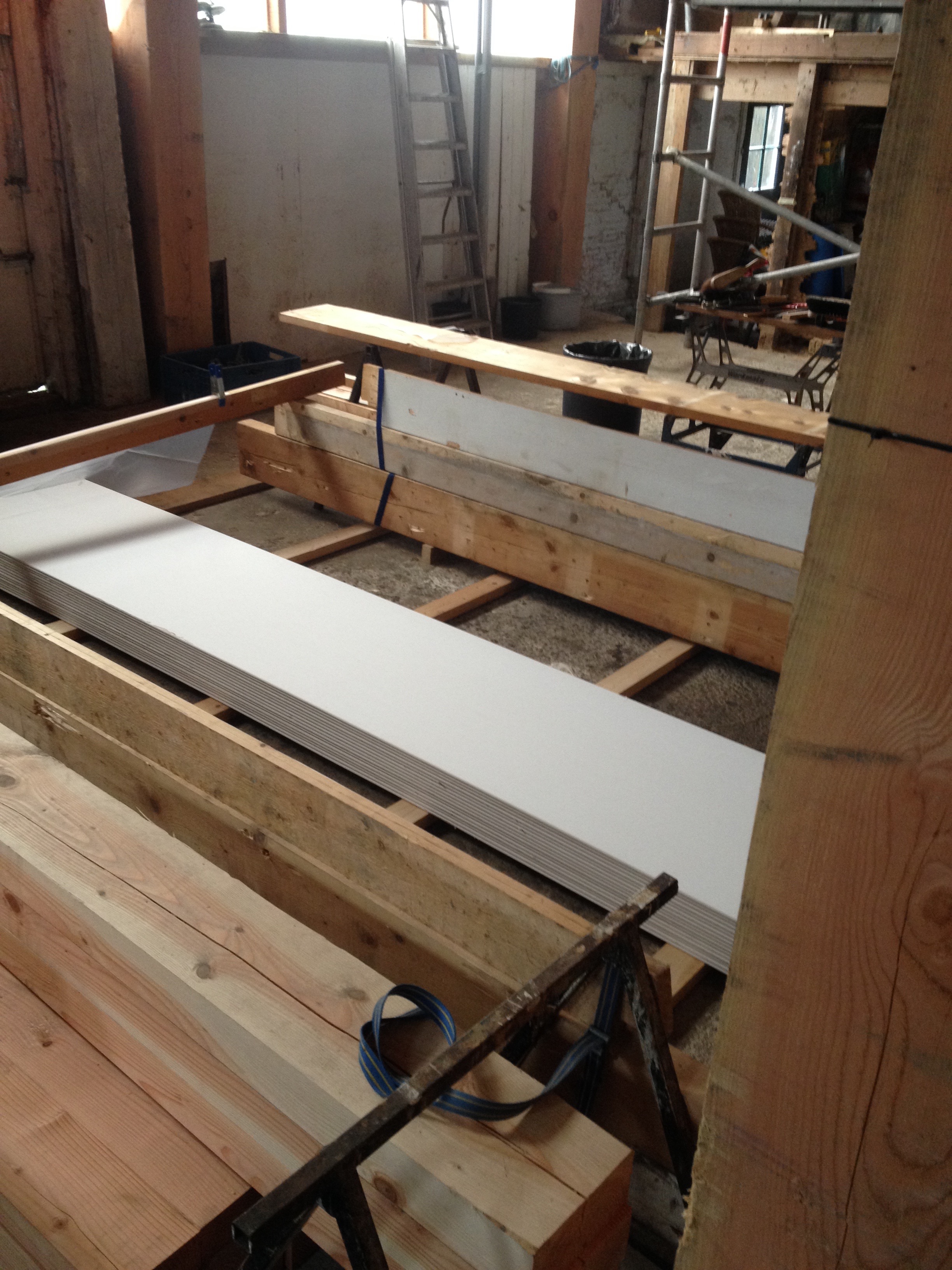 De muur en de zoldervloer klaar, begin wandverwarming én de leem komt aan.