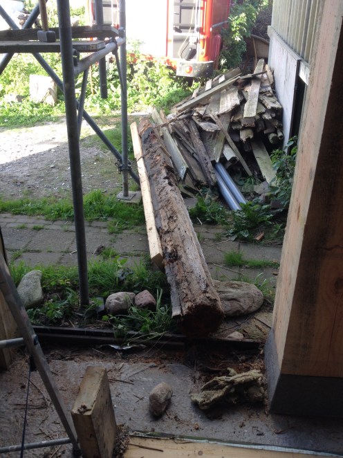 De muur en de zoldervloer klaar, begin wandverwarming én de leem komt aan.