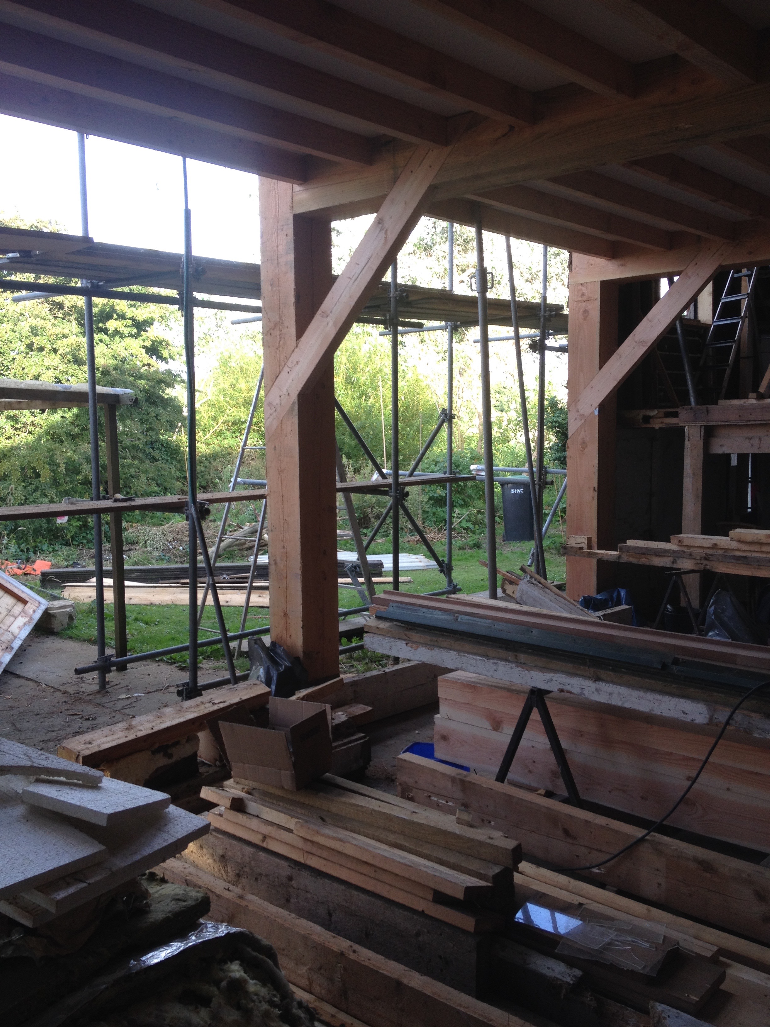 De muur en de zoldervloer klaar, begin wandverwarming én de leem komt aan.