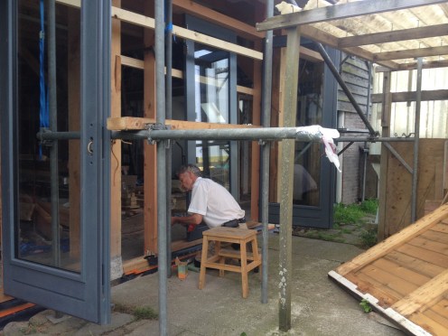De muur en de zoldervloer klaar, begin wandverwarming én de leem komt aan.