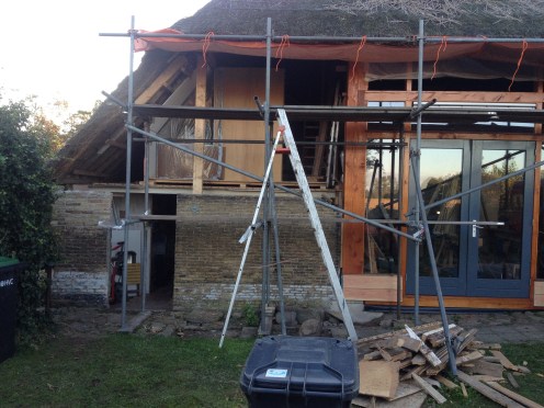 De muur en de zoldervloer klaar, begin wandverwarming én de leem komt aan.