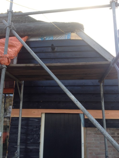 De muur en de zoldervloer klaar, begin wandverwarming én de leem komt aan.