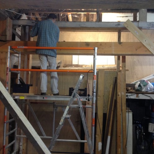 De muur en de zoldervloer klaar, begin wandverwarming én de leem komt aan.