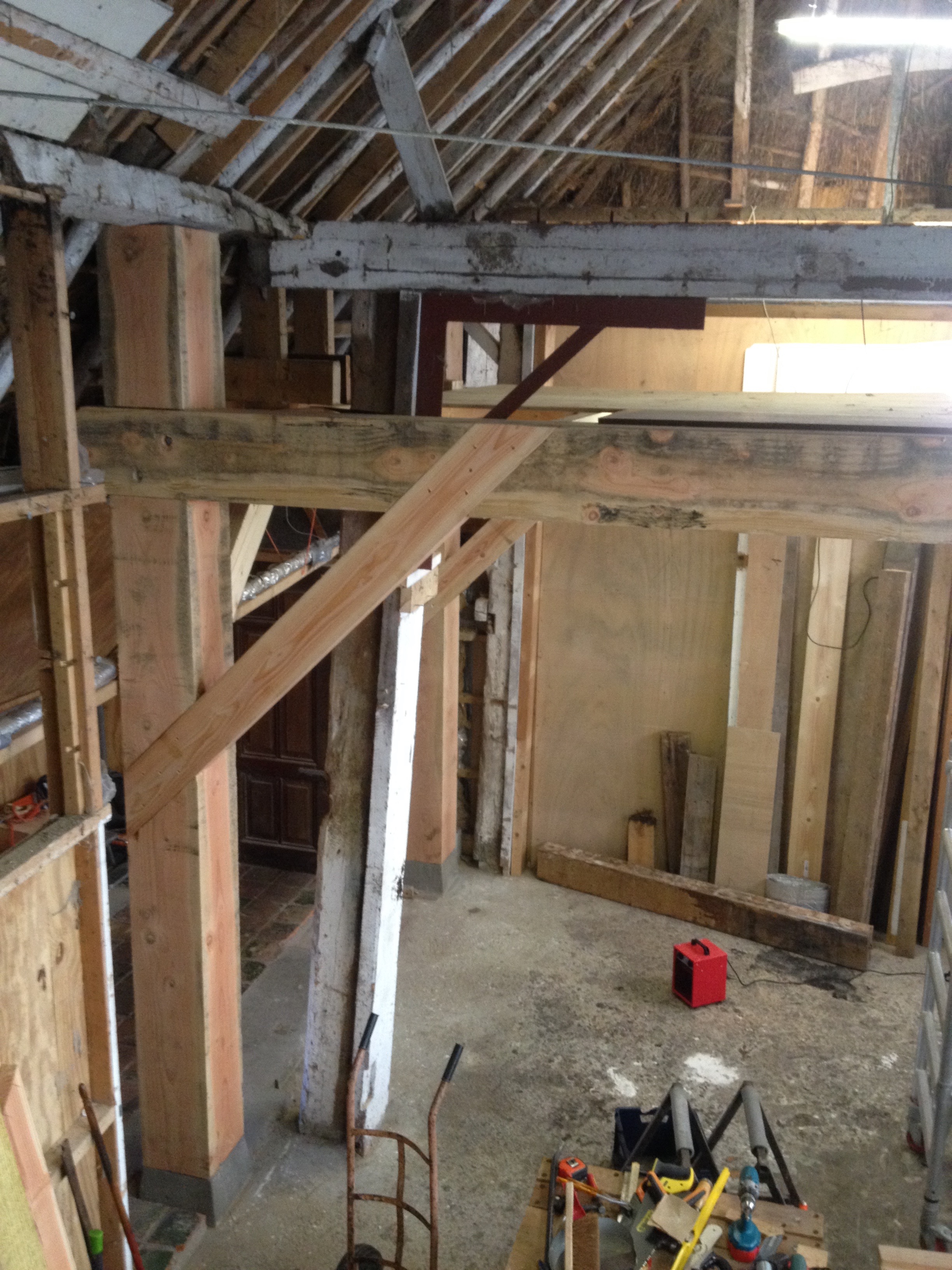De muur en de zoldervloer klaar, begin wandverwarming én de leem komt aan.