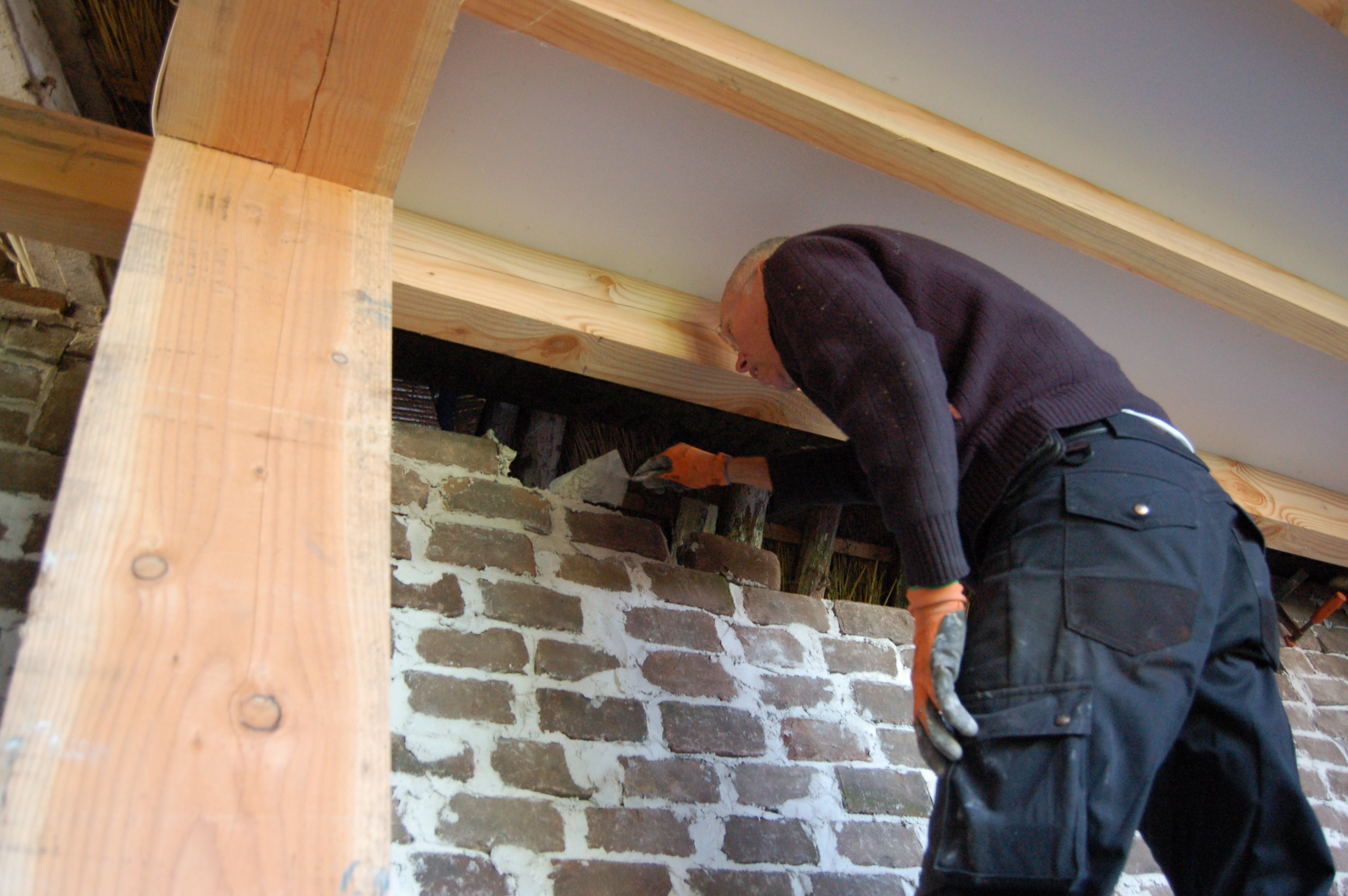 De muur en de zoldervloer klaar, begin wandverwarming én de leem komt aan.