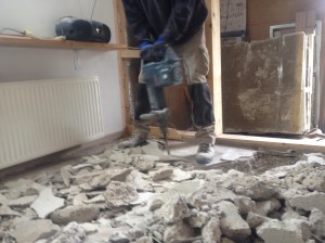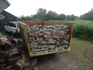 Een hele dag met een grote breekhamer en het ligt los. Dan toch nog maar een derde puincontainer. Het puin ligt er snel in.