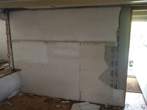 Na een ‘ziekte- en buitenwerk pauze’ is de muur om de yogaruimte eindelijk af.