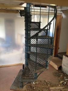 De mooie gietijzeren ‘kloostertrap’ krijgt een nieuw tehuis; we gaan een z.g. ‘molenaarstrap’ gebruiken.